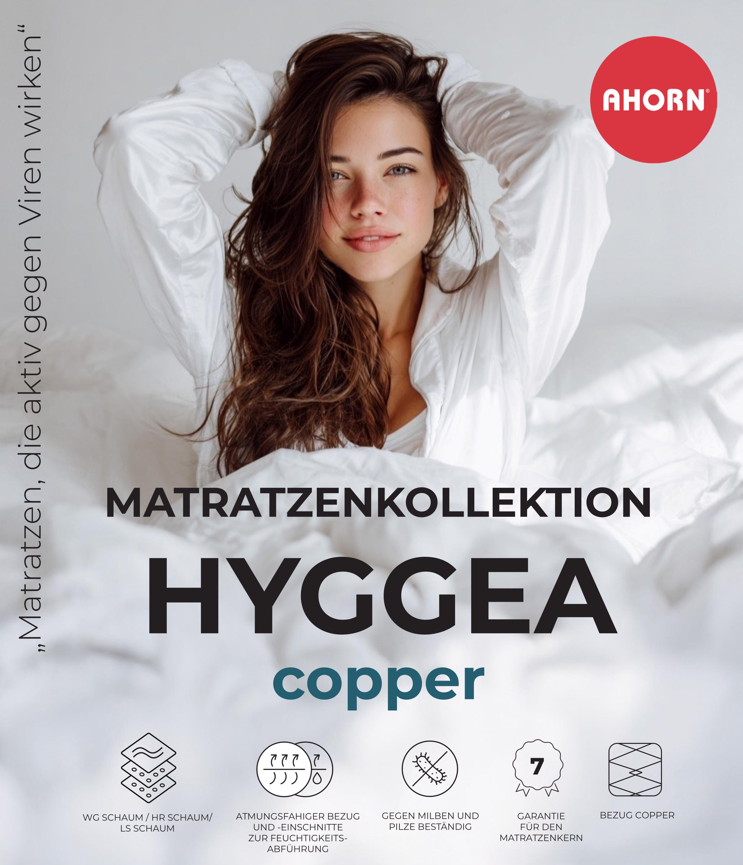Die Hyggea-Kollektion ist in drei Varianten erhältlich – Soft, Standard und Hard Copper – damit jeder Schläfer die passende Festigkeit für sich findet. Alle Modelle teilen dieselbe technologische Basis, denselben Qualitätsanspruch und dasselbe Ziel: einen gesunden, hygienischen und erholsamen Schlaf – Nacht für Nacht.