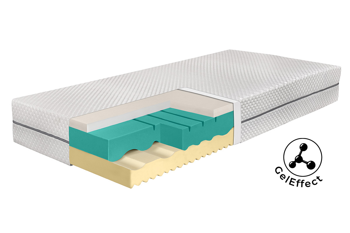 Materiál matrace: GelEffect, hybridní pěna, studená HR pěna